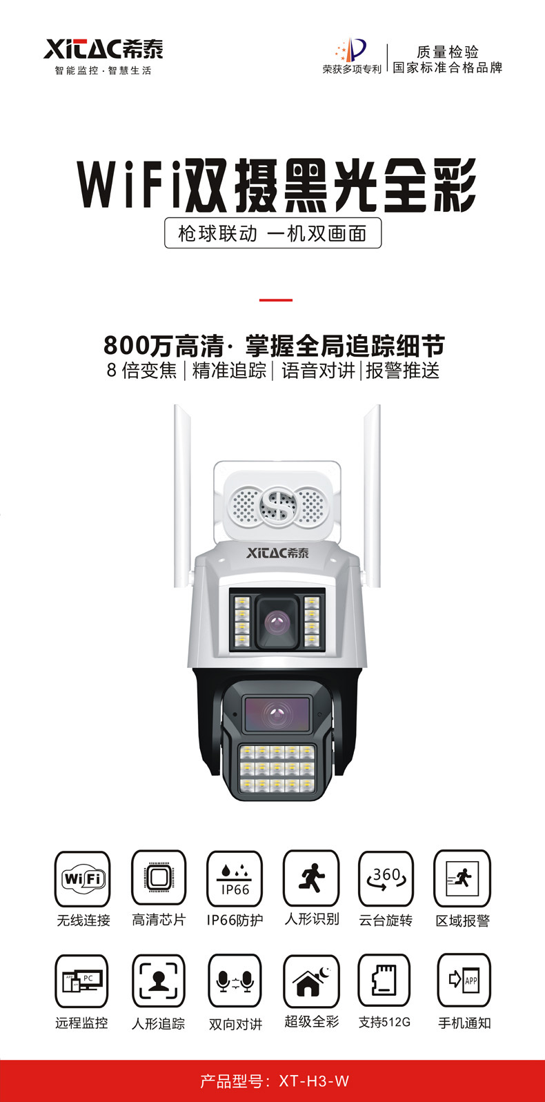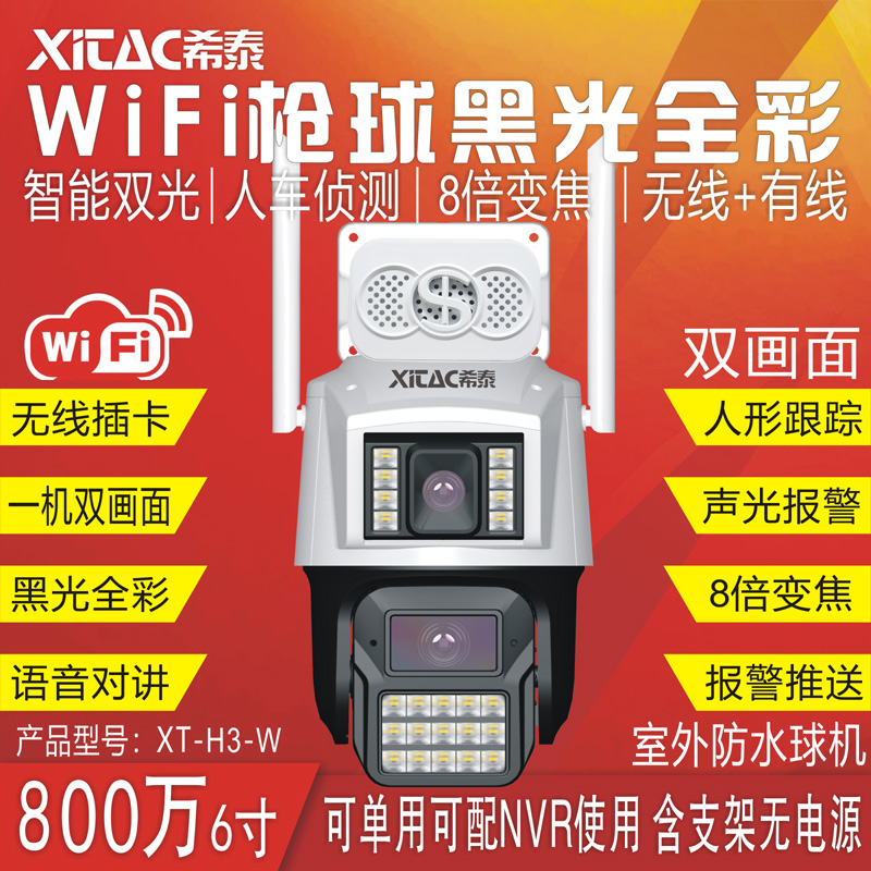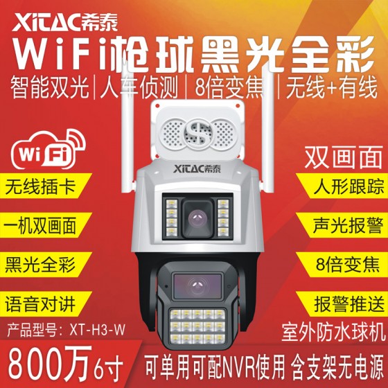 XT-H3-W 800万全彩6寸WiFi枪球双画面AI警戒跟踪无线球机